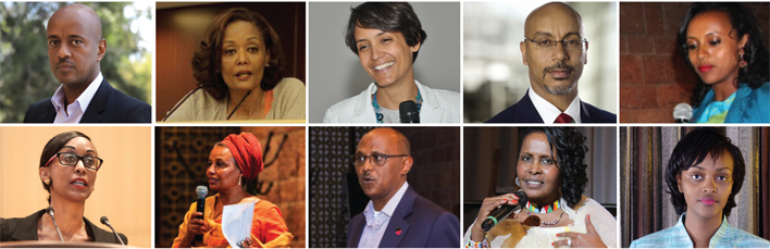 The 5th AWiB May forum – Transformation From top left to right: Haddis Tadesse, Selome Tadesse, Nadia Waber, Khalid Bomba, Tihtina Legesse,From Bottom left to right: Billene Seyoum, Konjit