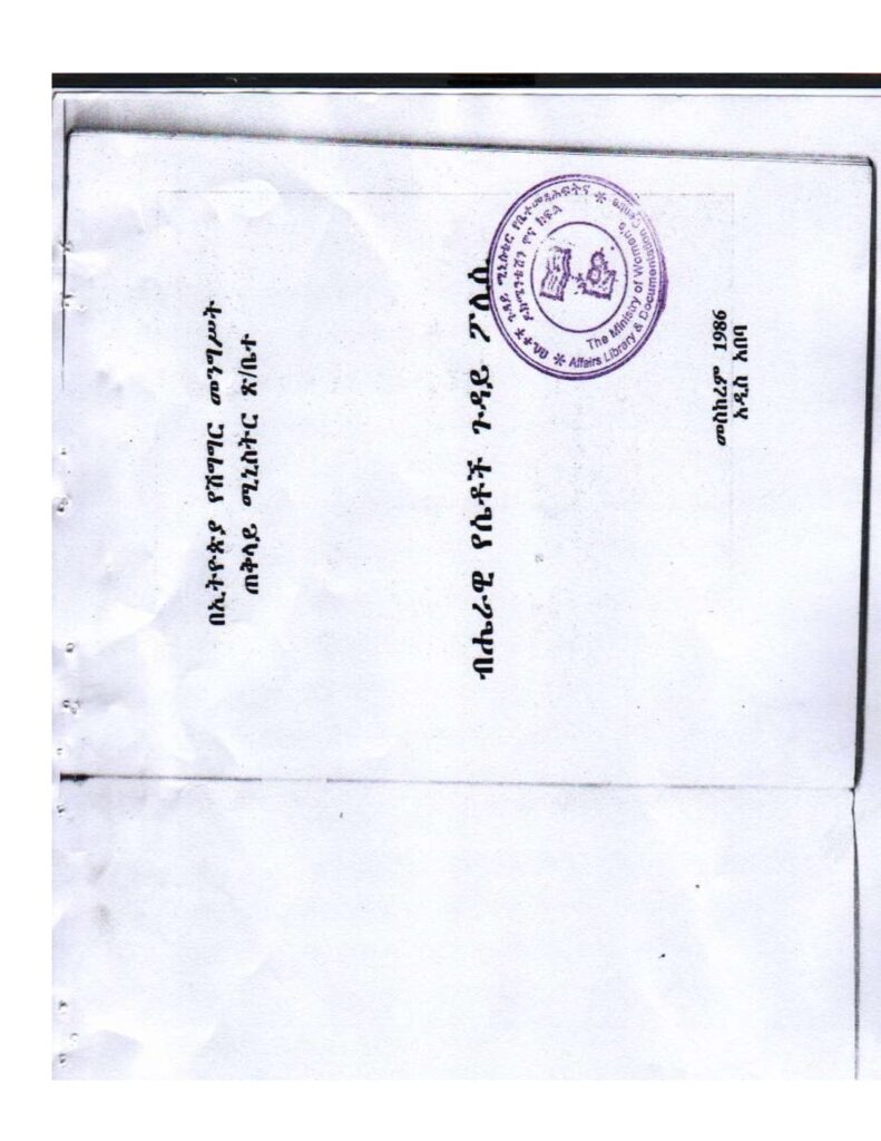 In Focus, we feature an important document “National  Ethiopian Women’s Policy” that is the basis for understanding women’s standing in the nation. Read the Document, Ethiopian women national policy