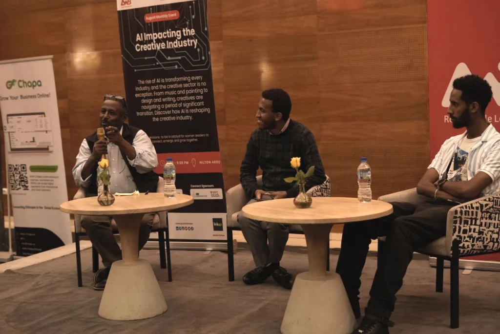 Bekele, the first speaker, commenced by narrating a story about past technological developments and how they altered human interactions. He discussed how technological breakthroughs such as the camera have impacted the creativity sector, emphasizing that humans can still devise innovative solutions.