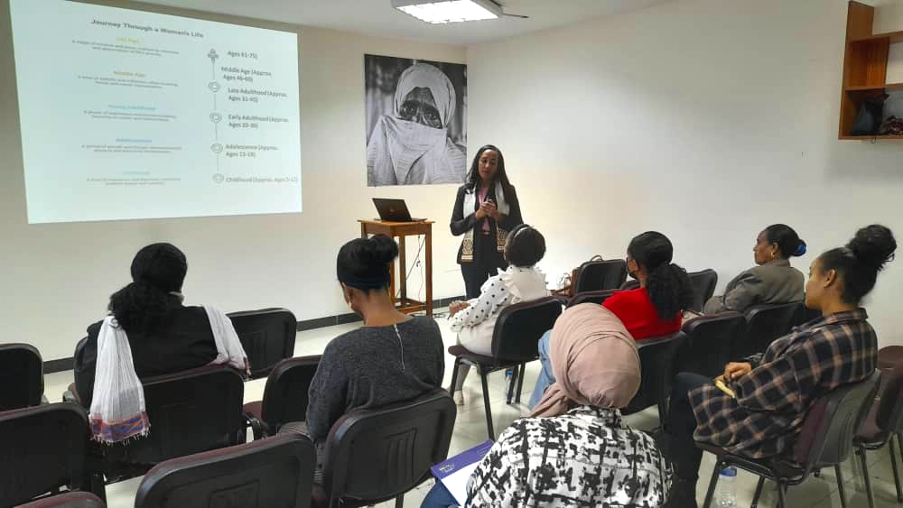 Dr. Meseret gave an overview of the reproductive journey through a woman’s life touching from childhood to adolescence, young adulthood, middle age and old age. This involved describing the different developments from discovery to puberty and hormonal changes happening during these phases. She briefly shared the experiences women have in their reporductive cycle during adolecence, firtility years, pregancy and menopause.